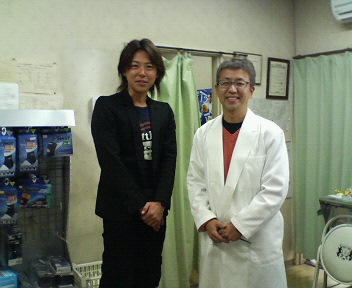 TOS放送「ハロー大分」のリポーターや、FM大分、OBSラジオのDJでおなじみの大野タカシ君と、院長の2ショットです。院長と私(事務長)は、以前から大野君とは顔なじみ(?)で、本日はライブの告知をかねて、訪れてくれました。
