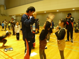 選手との対戦して、子供達がゴールを決めるシーンもありました。